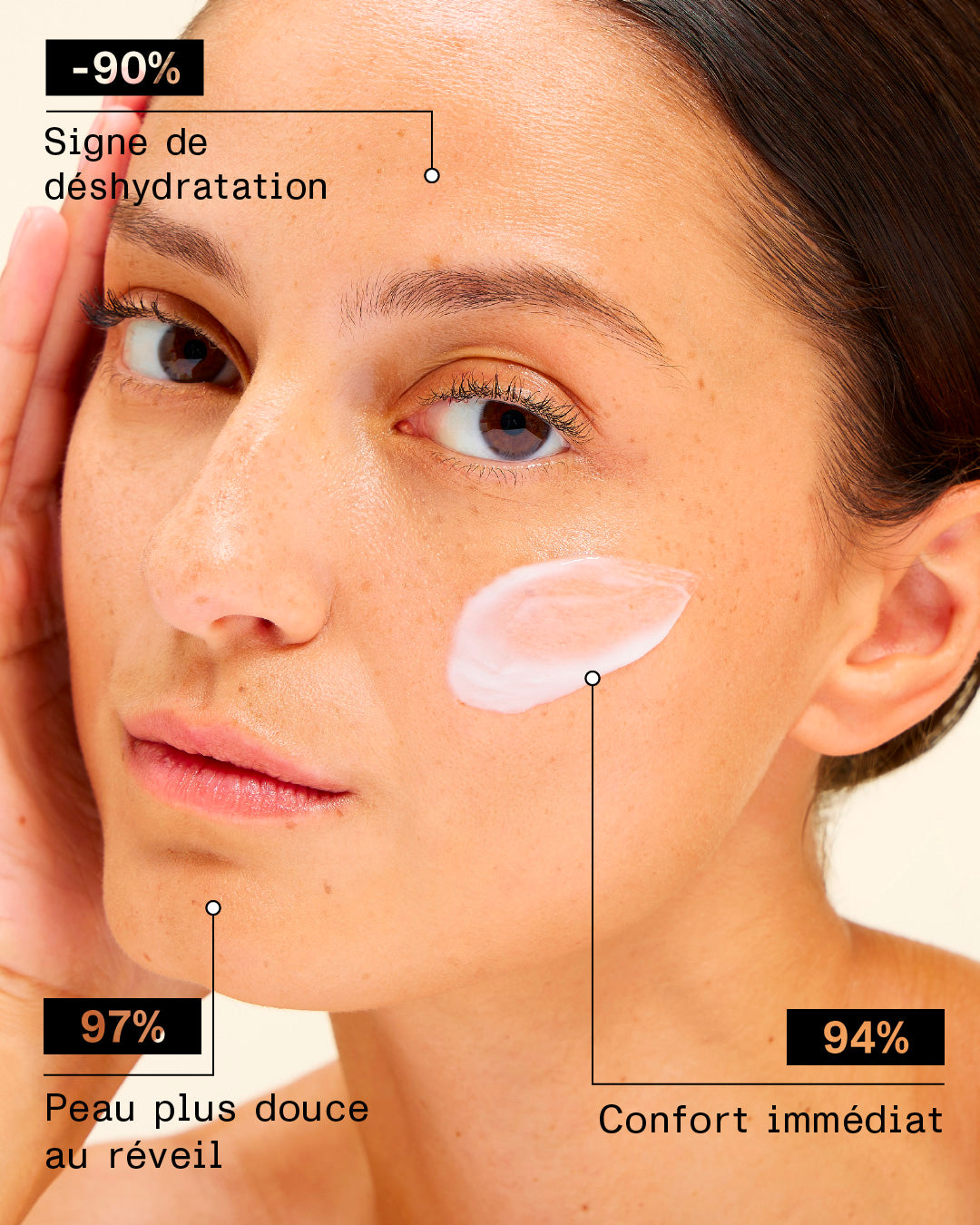 Repulpe les ridules au contact, restaure cet effet rebondi et crée une surface lisse qui reflète la lumière — pour cet éclat "glowy" tant recherché, sans effet gras ni lourdeur.